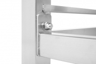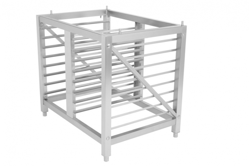 フラットパックスタンドは、611および1011用に設計されており、700 x 160 x 820 mm (w x h x d) のパッケージに梱包できます。このスタンドはGN 1/1のトレイ16枚用です。